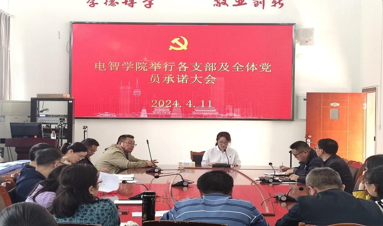 本网讯(文、图/胡丹)4月11日,为了进一步强化党员的责任感和使命感,电子信息与人工智能学院党委组织开展各党支部及全体党员公开承诺大会,会议由蒋强书记主持,电智学院全体党员老师参加。