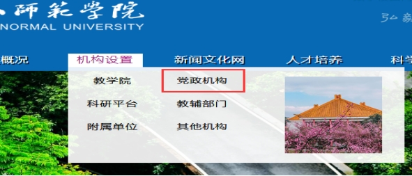 ,选择“机构设置”-->“党政机构”-->“教学部”-->“教学管理信息服务平台”登录页面。