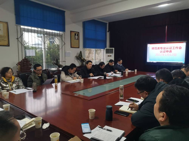本网讯(文/谢延明、图/谢影)2022年1月12日,认证工作领导小组办公室在数理学院会议室组织召开2022年师范类专业认证工作部署会,党委常委、副校长汪天飞出席会议,教学部、教师教育学院、质量监控处负责人、拟认证的六个专业所属学院院长、分管院长和专业负责人参加会议。