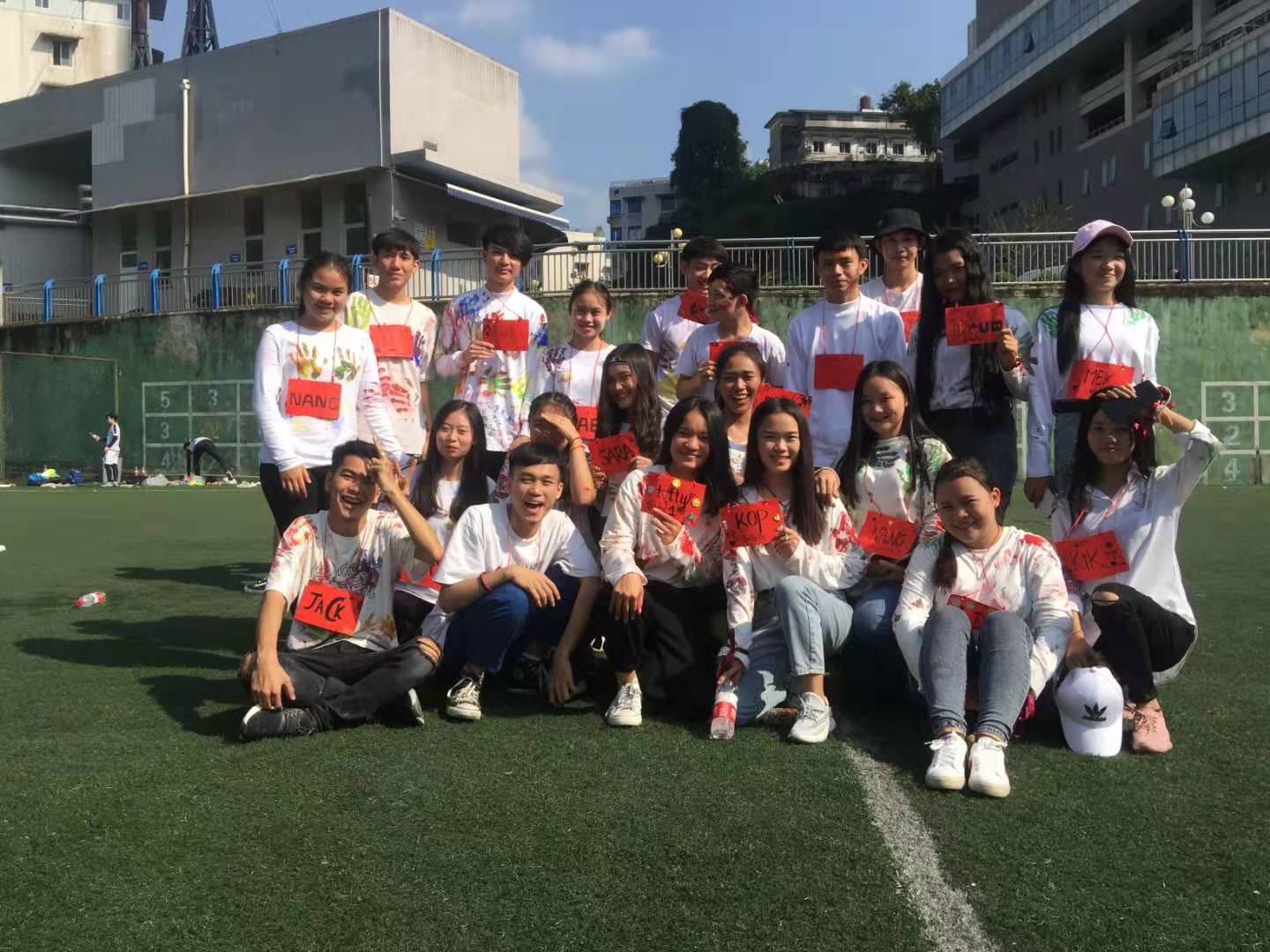 11月2日,为促进老挝新老留学生相互了解,留学生交流会在南校区操场举行。