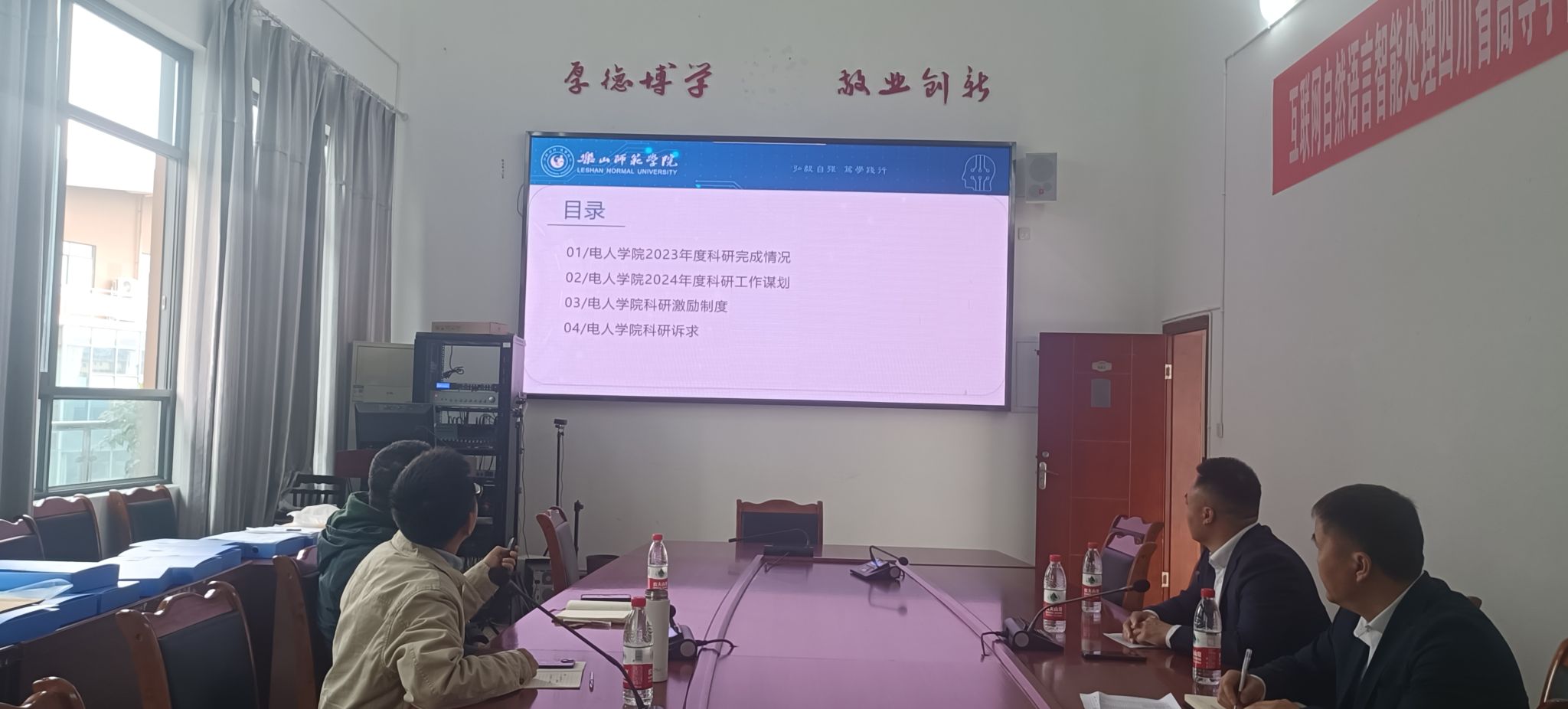 调研过程中,各学院领导汇报了本学院2023年度的科研工作情况、2024年度科研工作谋划、学院科研激励制度及科研诉求。