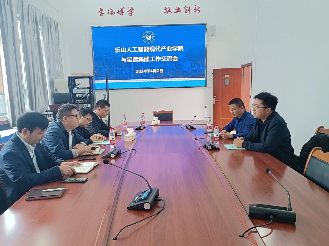 本次会上大家就学生实习、实训等战略合作方面进行了探讨。易华录信息技术股份有限公司与宝德集团有合作关系。中国华录集团是国务院国有资产监督管理委员会直接管理的中央企业。中国华录集团旨在推动“1+3+N”数字经济发展战略。会上朱捷就夹江等乐山本地项目与乐山人工智能现代产业学院的合作进行了沟通,旨在进一步深入落实学校与企业的深度合作。
