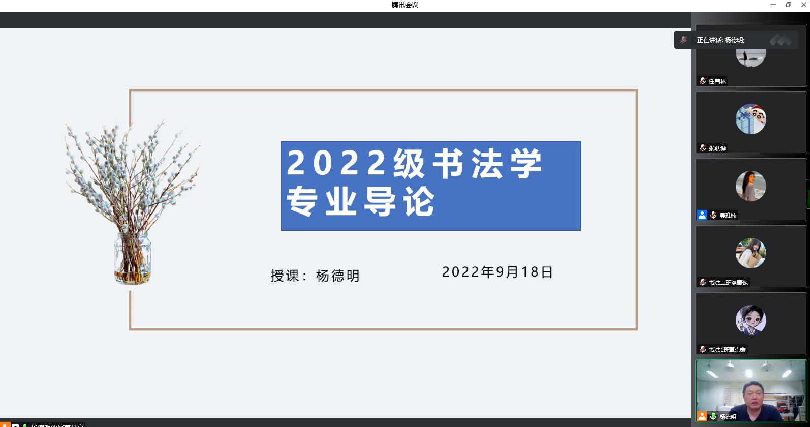 本网讯(文图任自林)9月18日,美术与设计学院通过腾讯会议开展了新生“开学第一课”,重点对新生进行了专业思想教育,引导新生更好的了解自己的专业,尽快适应大学生活。分管学生工作副书记、新生辅导员、各班班主任以及22级全体新生参加了线上“开学第一课”。