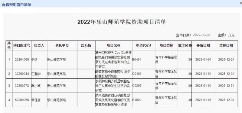 本网讯(文图/农向)9月8日,国家自然科学基金委公布了2022年度国家自然科学基金项目评审结果。我校本年度共获批国家自然科学基金青年科学基金项目4项,获批直接经费120万元。获批项目数为近年来最好成绩,位列省内同类院校前列。
